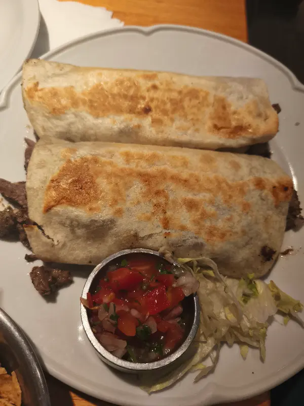 메인 요리로는 부리또와 타코를 선택했습니다. 부리또는 큼지막한 크기에 다양한 속 재료가 가득 차 있어 든든하게 배를 채울 수 있습니다. 육즙 가득한 고기와 신선한 채소, 그리고 매콤한 소스가 어우러져 환상적인 맛을 선사합니다. 다만, 부리또가 쉽게 풀어지는 점은 조금 아쉬웠습니다.