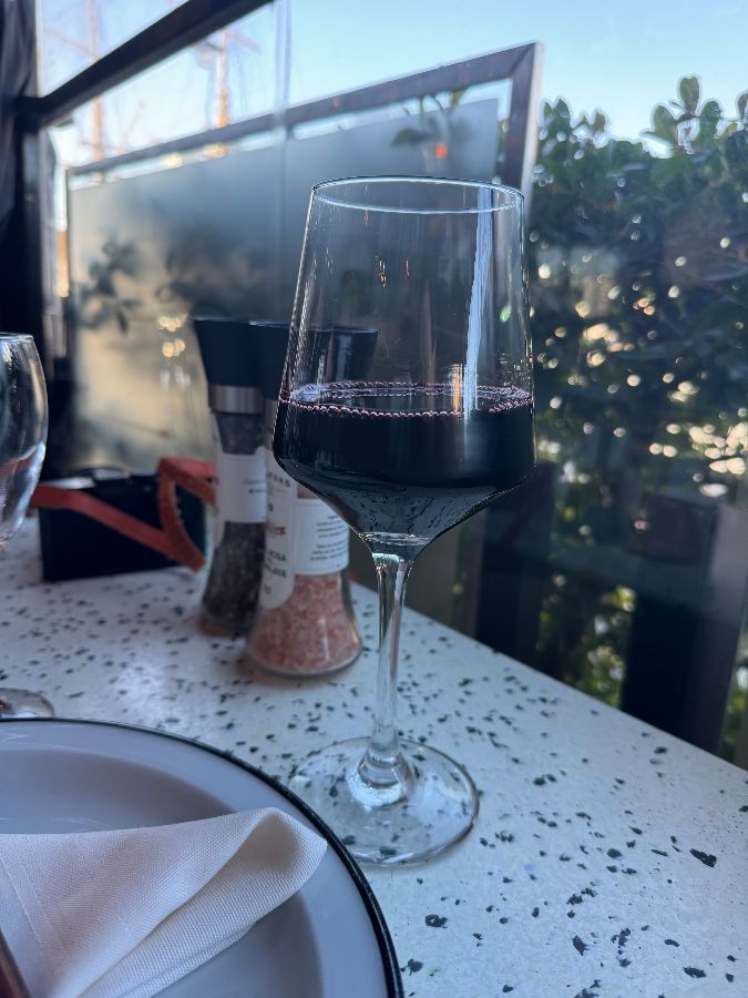 아르헨티나에서 스테이크를 즐기는데 와인이 빠질 수 없죠. 훌륭하다는 평이 자자한 하우스 와인 한 잔을 주문했습니다. 깊은 루비색 와인이 투명한 잔에 채워지는 순간, 그윽한 향이 코끝을 스쳤습니다. 한 모금 머금으니 부드러우면서도 묵직한 바디감이 입안을 감돌며, 곧이어 다가올 메인 요리에 대한 기대감을 한껏 끌어올렸습니다. 강물 위에 비치는 도시의 불빛과 와인잔 속 붉은 색이 어우러져, 이 순간이 얼마나 낭만적인지 새삼 깨닫게 해주었습니다. 가끔은 혼자만의 식사가 주는 고요함과 여유가 더욱 소중하게 느껴지는 법이죠.