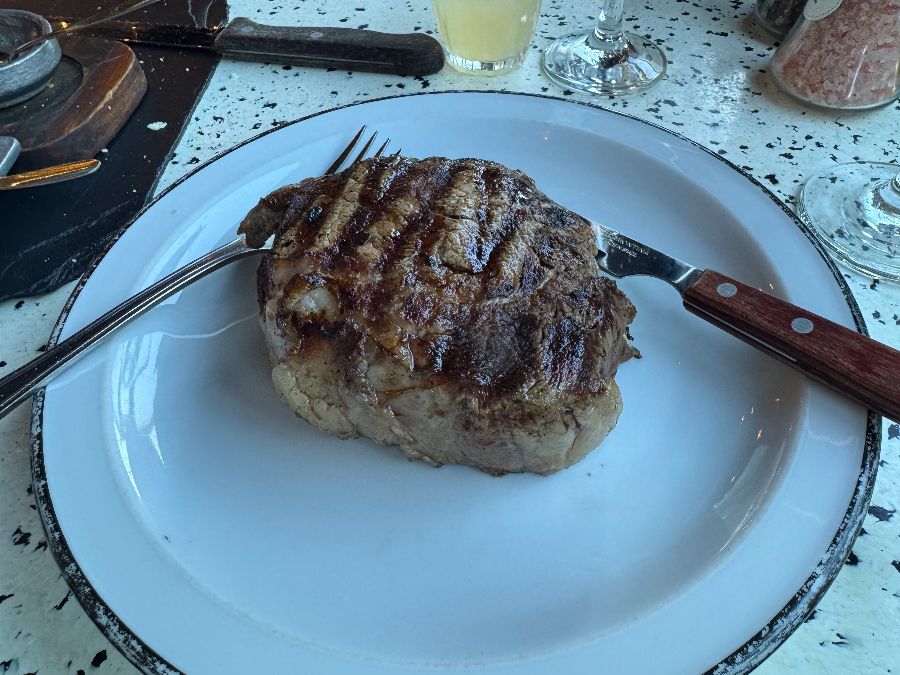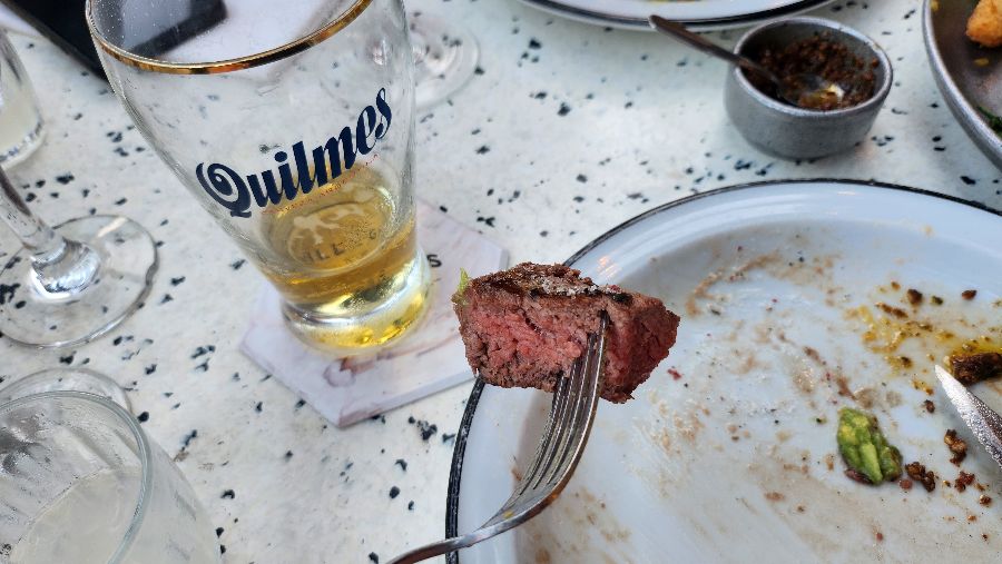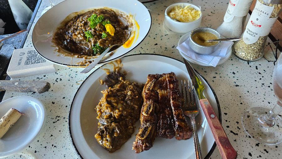 한 입 잘라 맛본 립아이는 과연 명불허전이었습니다. 고기가 아주 부드러웠으며, 씹을 때마다 진한 육향과 고소함이 입안 가득 퍼졌습니다. 아르헨티나가 ‘소고기의 국가’라는 것을 온몸으로 실감하게 되는 순간이었죠. 굽기도 적당하여 고유의 맛을 최대한 살려주었고, 뜨거운 육즙이 목을 타고 넘어가는 감각은 잊을 수 없는 경험이었습니다.