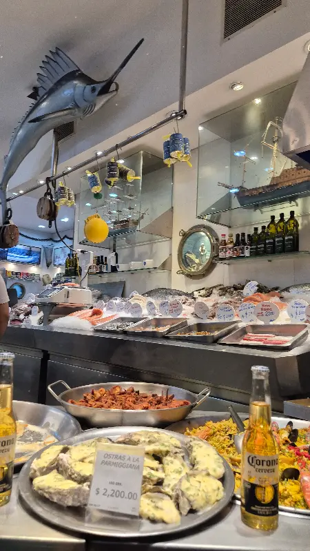 진열대 위에는 얼음 위에 가지런히 놓인 다양한 종류의 생선과 해산물이 눈길을 사로잡았다. 싱싱한 참치, 연어, 새우, 조개 등 보기만 해도 군침이 도는 해산물들이 가득했다. 마치 바다를 그대로 옮겨 놓은 듯한 생생함이 느껴졌다.