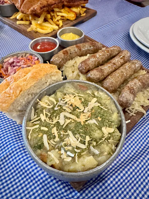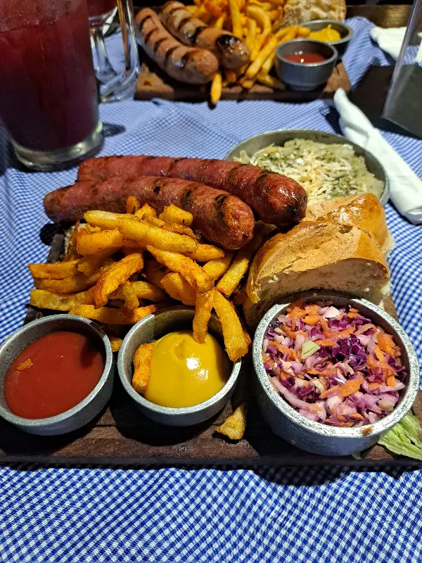 부에노스아이레스에서 만나는 정통 독일의 맛, 엑스트라부르스트 가스첸케(Extrawurst Gastschenke)는 단순한 식당이 아닌, 독일의 문화와 향수를 고스란히 느낄 수 있는 특별한 공간입니다. 문을 열고 들어서는 순간, 따뜻하고 아늑한 분위기가 마치 독일의 작은 선술집에 온 듯한 착각을 불러일으킵니다. 나무 테이블과 의자, 은은한 조명, 그리고 벽에 걸린 독일 풍경 사진들이 어우러져 편안하고 정겨운 분위기를 자아냅니다.