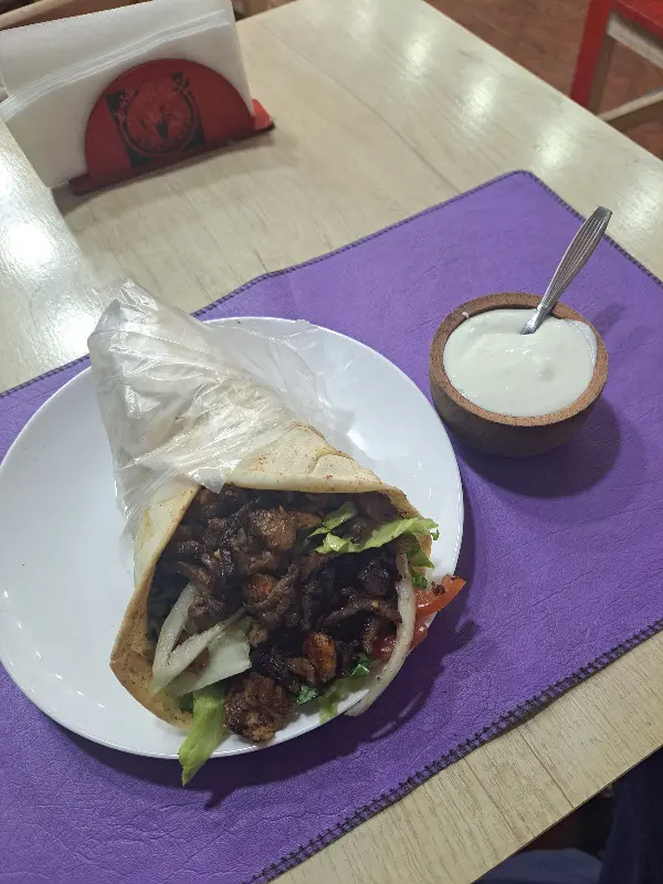 돈 샤와르마의 대표 메뉴는 단연 믹스 샤와르마입니다. 사진에서 보이는 것처럼, 얇게 슬라이스된 고기가 듬뿍 들어간 샤와르마는 보기만 해도 군침이 돕니다. 육즙 가득한 고기는 입안에서 살살 녹고, 특제 양념은 풍미를 더합니다. 신선한 요거트 소스는, 자칫 느끼할 수 있는 맛을 잡아주어 완벽한 조화를 이룹니다. 한 입 베어 물면, 전에 맛보지 못했던 환상적인 맛에 감탄하게 됩니다. 양념을 과하게 사용하지 않고 재료 본연의 맛을 살린 점이 특징입니다.