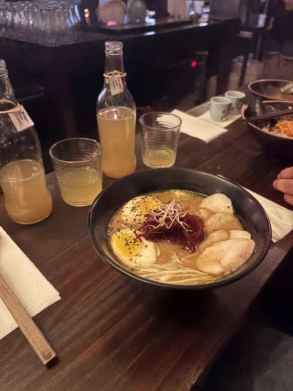 키핏 리얼 라멘(Khipu Real Ramen)은 부에노스아이레스에서 일본 라멘의 진수를 느낄 수 있는 특별한 공간입니다. 문을 열고 들어서는 순간, 일본 현지의 라멘집에 온 듯한 착각을 불러일으키는 분위기가 인상적입니다. 아늑한 조명 아래 나무 테이블과 의자가 놓여 있고, 벽면에는 일본풍 소품들이 장식되어 있어 편안하면서도 이국적인 느낌을 자아냅니다. 라멘을 맛보기 전부터 이미 분위기에 취해 기대감이 높아집니다.