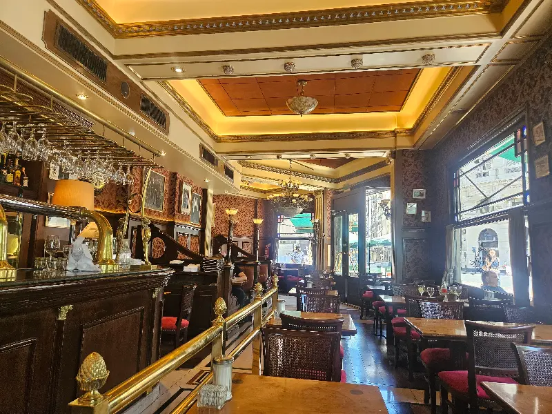 쁘띠 콜론에 들어서면 가장 먼저 눈에 띄는 것은 화려하면서도 섬세한 인테리어다. 붉은 벨벳 의자와 나무 테이블, 벽면을 가득 채운 고풍스러운 장식들은 마치 70년대 황금시대로 돌아간 듯한 느낌을 선사한다. 한 리뷰어는 이곳을 “문명의 안식처”라고 표현했는데, 과연 그 말처럼 라발레 광장의 혼잡함 속에서 잠시 벗어나 여유를 즐기기에 완벽한 공간이다. 천장의 섬세한 몰딩과 은은하게 빛나는 샹들리에, 그리고 곳곳에 놓인 예술 작품들은 쁘띠 콜론의 분위기를 한층 더 고급스럽게 만들어준다.