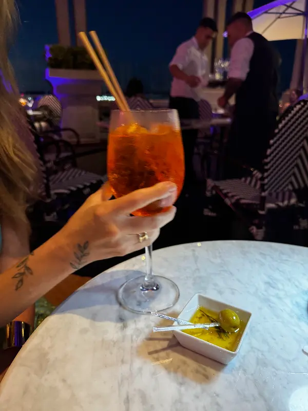 음료로는 아페롤을 주문했습니다. 알베아르 루프 바에서는 늦은 밤에 아페롤 2+1 행사를 진행하고 있다고 합니다. 상큼하면서도 쌉쌀한 아페롤은 달콤한 밤을 보내기에 완벽한 선택이었습니다.
