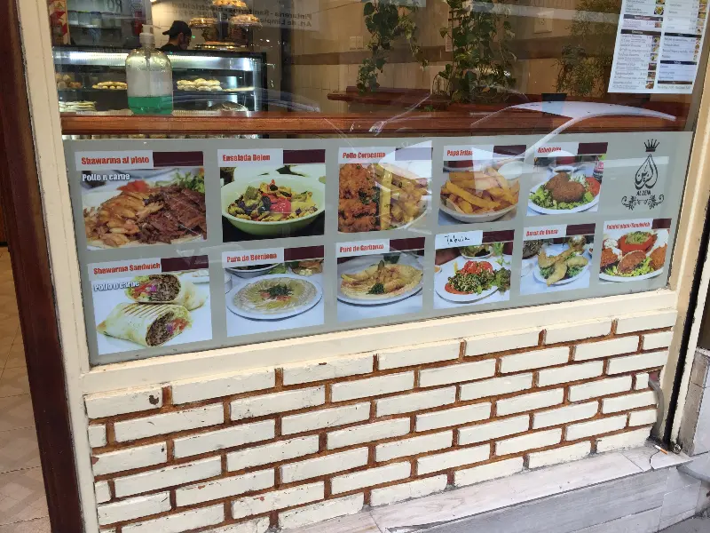 작은 가게는 테이크 아웃에 최적화되어 있었지만, 외부에는 작은 테이블과 의자가 놓여 있어 간단하게 식사를 즐길 수도 있었습니다. 안쪽 카운터는 주문을 기다리는 동안 편안하게 앉아 있을 수 있는 공간을 제공했습니다. 메뉴를 살펴보니, 샤와르마, 팔라펠, 엠파나다 등 다양한 중동 음식이 준비되어 있었습니다.