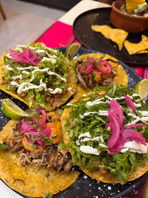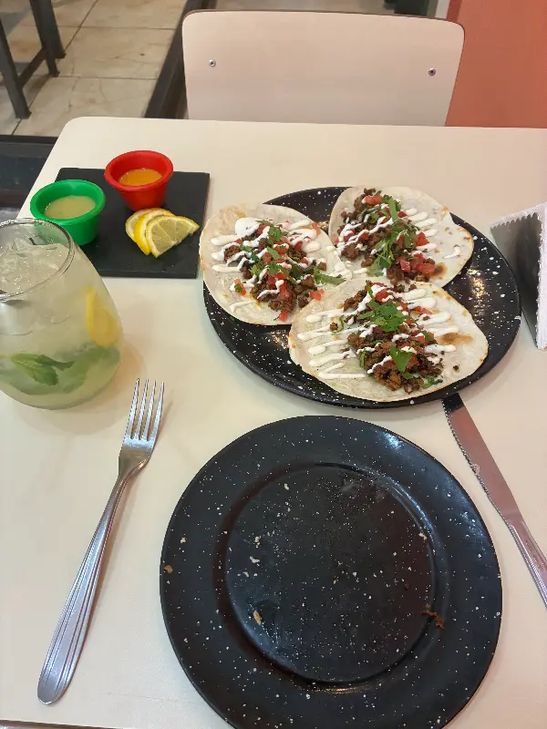 점심에는 애피타이저, 타코 세 개, 그리고 음료가 포함된 런치 세트를 주문할 수 있다. 특히 살사 소스는 매운맛과 상큼한 맛 두 가지로 제공되어 더욱 만족스러웠다.