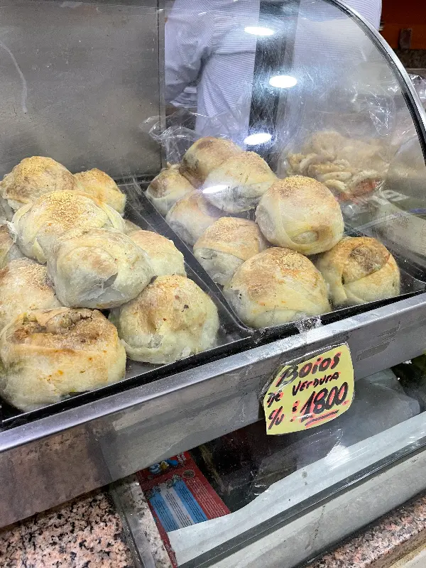 한쪽 벽면에는 아랍 식료품들이 진열되어 있었는데, 독특한 향신료 냄새가 코를 간지럽혔다. “아, 여기가 정말 아랍 음식을 제대로 하는 곳이구나” 라는 생각이 절로 들었다. 잠시 기다리는 동안 쇼케이스 안에 진열된 먹음직스러운 보이오스를 구경했다. 겉은 노릇노릇하게 구워지고, 속은 촉촉한 치즈와 야채로 가득 찬 모습이 침샘을 자극했다. 가격표에는 1800페소라고 적혀 있었다.