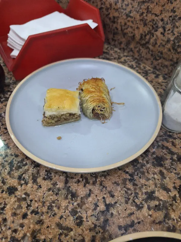 식사를 마치고, 달콤한 디저트가 먹고 싶어 마물과 바클라바를 주문했다. 마물은 살구, 호두, 대추야자로 만든 달콤한 간식이었는데, 입안에서 살살 녹는 듯한 부드러운 식감이 인상적이었다. 바클라바는 겹겹이 쌓인 페이스트리 사이에 견과류와 시럽이 듬뿍 들어간 디저트였는데, 달콤하면서도 고소한 맛이 일품이었다.