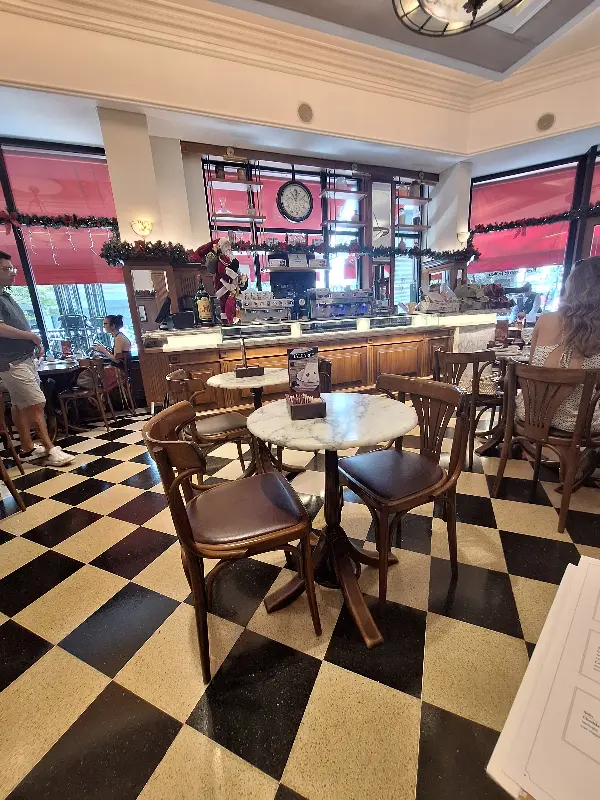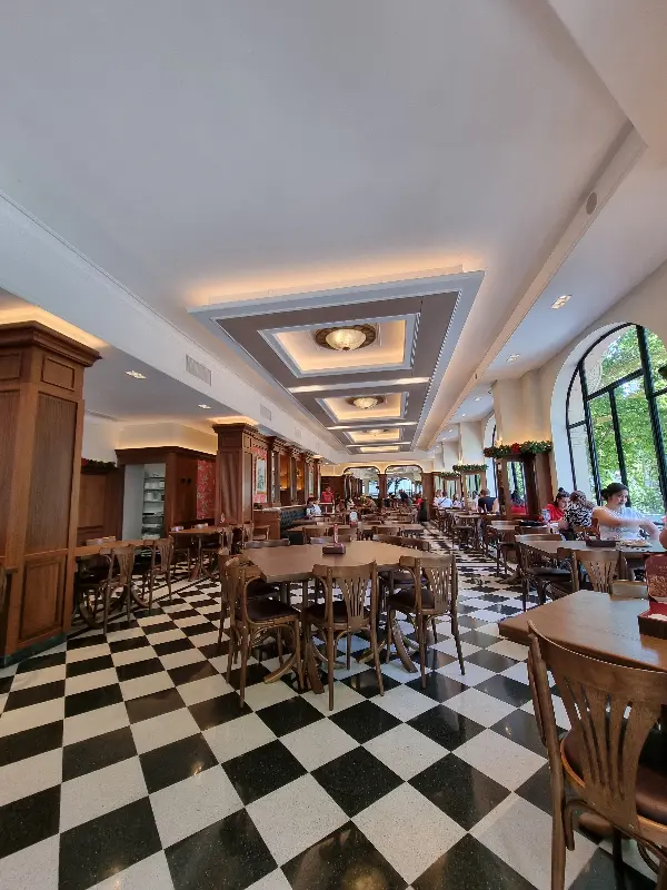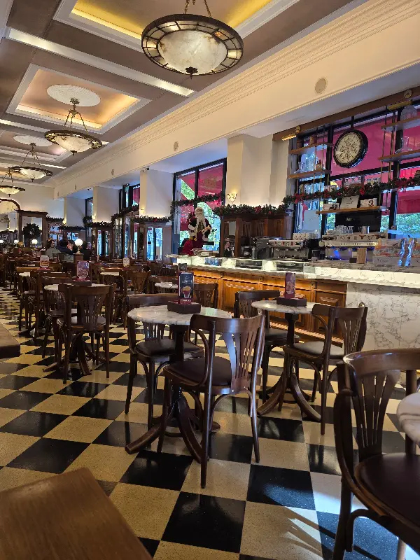 첫인상은 강렬했다. 앤티크한 가구와 섬세한 장식들이 조화를 이루며, 마치 영화 세트장에 들어온 듯한 착각을 불러일으킨다. 높은 천장과 넓은 공간은 시원한 개방감을 선사하고, 흑백의 바닥 타일은 클래식한 분위기를 더욱 돋보이게 한다. 곳곳에 걸린 예술 작품들은 카페의 품격을 높이며, 방문객들에게 시각적인 즐거움을 선사한다.