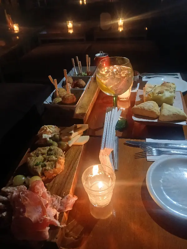 이미지 속 테이블 위에는 다양한 종류의 음식이 보기 좋게 담겨 있다. 촛불의 따스한 빛이 음식들을 감싸 안으며, 식욕을 자극하는 동시에 편안한 분위기를 조성한다.