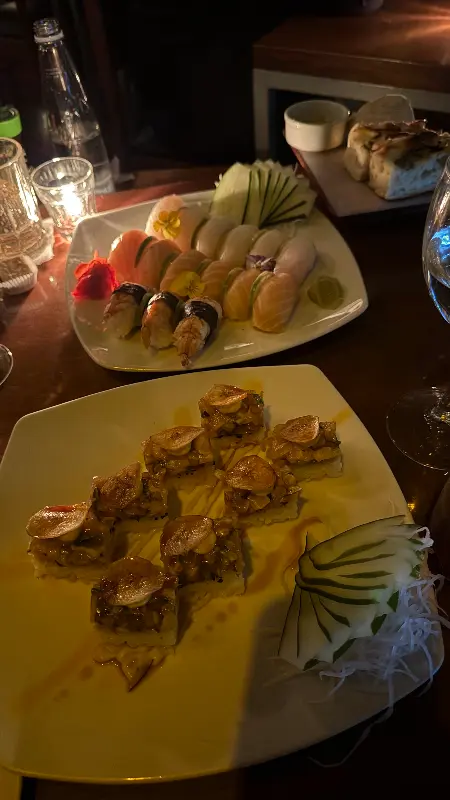 사진 속 스시는 신선한 재료와 정교한 솜씨로 만들어진 작품과 같다. 윤기가 흐르는 밥알과 싱싱한 해산물의 조화는 보기만 해도 군침이 돈다.