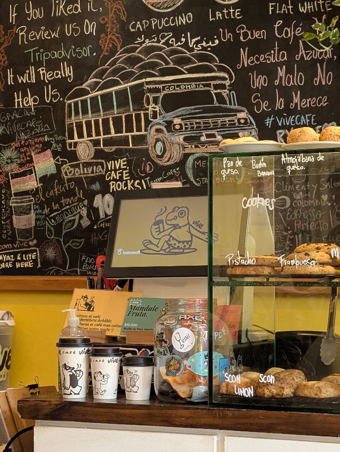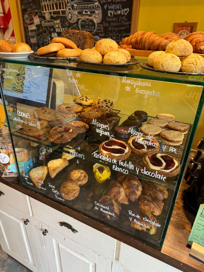 비브 카페는 커피만큼이나 샌드위치와 디저트류로도 명성이 자자합니다. 아침이나 브런치를 즐기기에 이보다 더 좋은 곳은 없을 겁니다. 유리 진열대에는 갓 구워낸 듯한 빵과 타르트, 쿠키들이 먹음직스러운 자태를 뽐내고 있었습니다. 특히 눈길을 끈 것은 구아바를 곁들인 알모하바나와 바나나 푸딩, 그리고 패션프루트 크림 크루아상이었습니다.