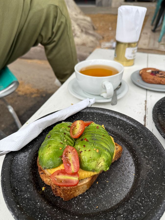 저는 리뷰에서 강력 추천하는 ‘클래식 아보카도 샌드위치’와 ‘안심과 치즈를 곁들인 사워도우 샌드위치’를 주문했습니다. 먼저 나온 아보카도 샌드위치는 두툼한 사워도우 빵 위에 초록빛 아보카도가 풍성하게 올라가 있고, 방울토마토 조각과 붉은 후추 플레이크가 뿌려져 있어 그 신선함이 시각적으로도 느껴졌습니다. 한 입 베어 무는 순간, 고소하고 부드러운 아보카도와 상큼한 토마토가 어우러져 입안 가득 행복감이 퍼졌습니다.