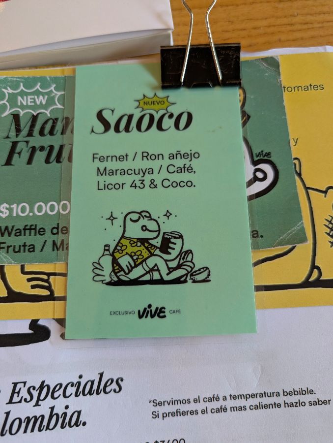 비브 카페의 명성 높은 커피를 그냥 지나칠 수는 없었습니다. 이곳은 콜롬비아 커피의 진정한 맛을 경험할 수 있는 곳으로 손꼽힙니다. 따스한 햇살이 창가를 타고 들어와 라떼 아트를 더욱 돋보이게 하는 자리에서, 저는 아이스 라떼를 주문했습니다. 한 모금 마시기도 전에 눈을 사로잡는 것은 바로 그 위에 정교하게 그려진 라떼 아트였습니다. 우유 거품으로 섬세하게 표현된 말(馬) 모양은 단순한 음료를 넘어 한 폭의 예술 작품 같았습니다. 차가운 유리잔에 담긴 아이스 프라페 역시 그 신선함과 풍미가 일품이었죠.