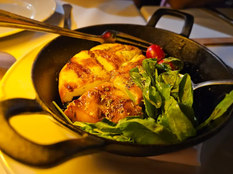 정식 메뉴로 제공되는 육회, “Ternera marinada con hierbas con rúculas”는 신선함이 돋보이는 메뉴입니다. 부드러운 육질과 향긋한 허브, 그리고 신선한 루꼴라의 조화는 입안 가득 풍미를 선사합니다. 특히 음식에 곁들여 나오는 바게트 빵은 놀라울 정도로 부드러워 육회와 함께 즐기기에 완벽합니다.