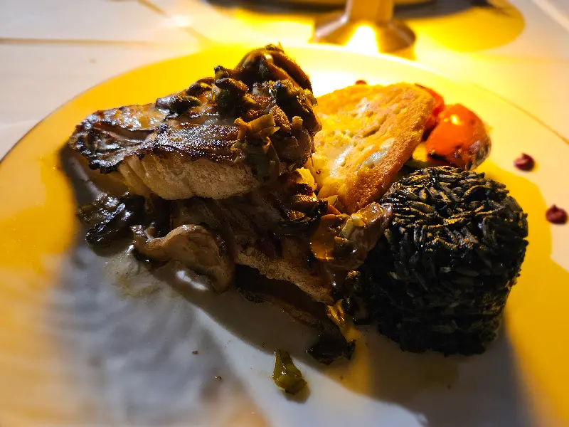 저는 대구 요리를 먹었는데, 제 입맛에는 조금 싱거웠지만, 먹물밥은 정말 맛있었습니다. 다양한 해산물이 듬뿍 들어간 먹물밥은 짭짤하면서도 고소한 맛이 일품입니다. 밥알 하나하나에 깊게 스며든 먹물의 풍미는 잊을 수 없는 맛을 선사합니다.