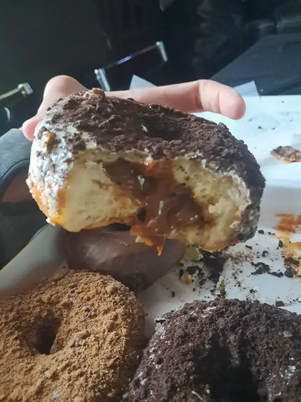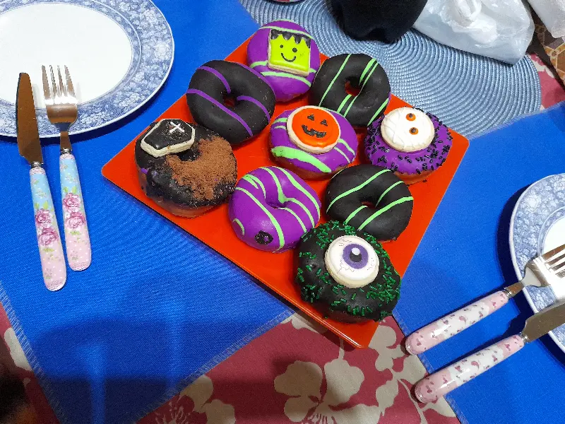 도넛을 한 입 베어 무는 순간, 감탄사가 절로 나왔습니다. “정말 영화에 나올 법한 맛”이라는 표현이 딱 맞는 맛이었습니다. 부드러운 도넛의 식감과 입안 가득 퍼지는 달콤함은 잊을 수 없는 경험을 선사했습니다. 특히, 초콜릿 도넛은 진한 초콜릿의 풍미가 일품이었고, 으스스한 쿠키는 할로윈 분위기를 더했습니다.