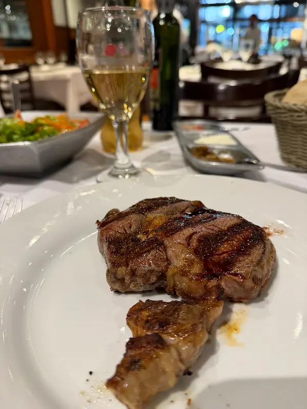 한 모금 마시는 순간, 와인의 깊은 맛과 향이 입안 가득 퍼지며 스테이크의 풍미를 더욱 돋보이게 한다. 와인과 스테이크의 조화는 단순한 맛의 조합을 넘어, 감각적인 경험을 선사한다. Aires Criollos에서는 와인 한 잔과 함께 여유로운 시간을 보내며, 미식의 즐거움을 만끽할 수 있다. 다만, 아쉬운 점은 간혹 상한 와인이 제공될 수 있다는 점이다. 하지만, 이 경우에도 친절하게 응대하며 바꿔주기 때문에 큰 문제는 되지 않는다.
