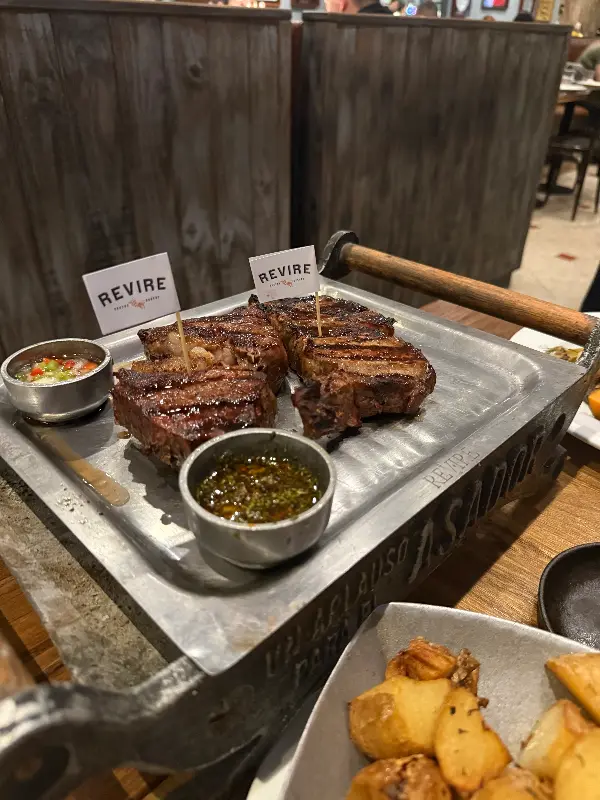 Revire Brasas Bravas에서는 최고의 스테이크를 맛볼 수 있습니다. 완벽하게 구워진 스테이크는 겉은 바삭하고 속은 촉촉하며, 풍부한 육즙이 입 안 가득 퍼집니다.
