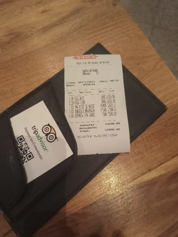 Revire Brasas Bravas는 첫인상부터 강렬한 인상을 남깁니다. 은은한 조명 아래 고급스러운 가죽 부스가 놓여 있어, 마치 영화 속 한 장면처럼 고풍스러운 분위기를 자아냅니다. 영어를 구사하는 친절한 직원들의 세심한 서비스는 식사 시간을 더욱 풍요롭게 만들어줍니다. 특히 니콜라스라는 직원은 유쾌함과 뛰어난 서비스로 깊은 인상을 남겼다는 후기가 많습니다.