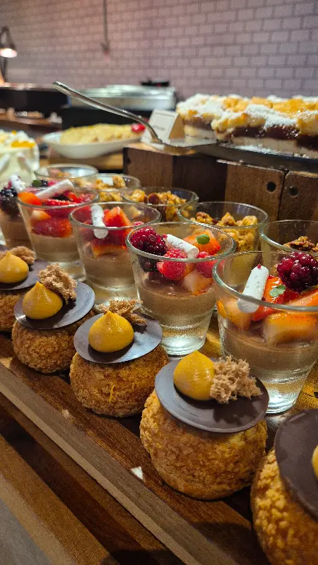 전반적으로 아쉬운 점도 있었지만, 디저트는 꽤 괜찮았습니다. 달콤한 케이크와 츄러스는 식사를 마무리하기에 완벽했습니다. 특히 다양한 페이스트리는 눈으로 보기에도 아름다웠고, 맛 또한 훌륭했습니다.