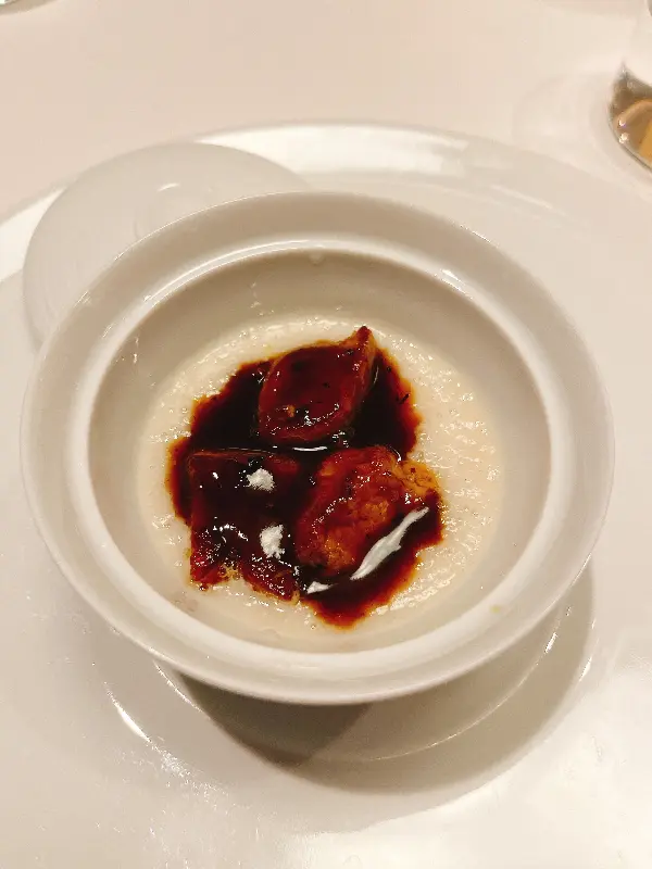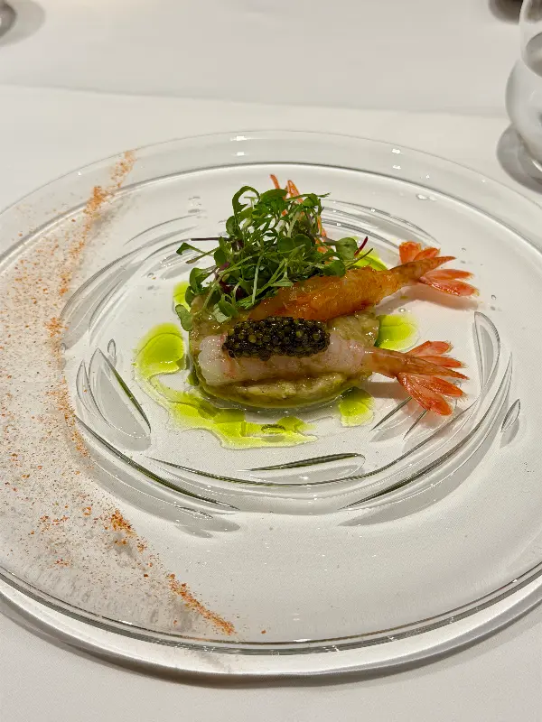 가장 먼저 나온 아뮤즈 부쉬는 신선한 해산물을 이용한 요리였다. 입안에서 톡톡 터지는 식감과 상큼한 맛이 입맛을 돋우기에 충분했다. 이어서 나온 푸아그라 요리는 겉은 바삭하고 속은 촉촉한 완벽한 조화를 이루었다. 특히, 푸아그라와 함께 곁들여진 달콤한 소스는 풍미를 더욱 깊게 만들어주었다.