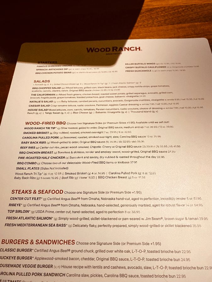 어스름이 내리는 저녁, 굽이진 도로를 따라 걷다 보면 어디선가부터 코끝을 간지럽히는 훈연 향이 발걸음을 멈추게 합니다. 마치 마법에 홀린 듯 이끌려 도착한 곳, 바로 우드 랜치(Wood Ranch)입니다. 이곳은 단순한 식당이 아니라, 오랫동안 기다려온 미식의 향연을 약속하는 듯한 특별한 기운을 품고 있었습니다. 문을 여는 순간, 따뜻하면서도 활기찬 공기가 저를 감쌌습니다. 은은한 조명 아래 정돈된 테이블과 부스들이 편안한 분위기를 자아냈고, 테이블마다 들려오는 기분 좋은 대화 소리는 이곳이 얼마나 많은 이들에게 사랑받는 공간인지 짐작하게 했습니다.