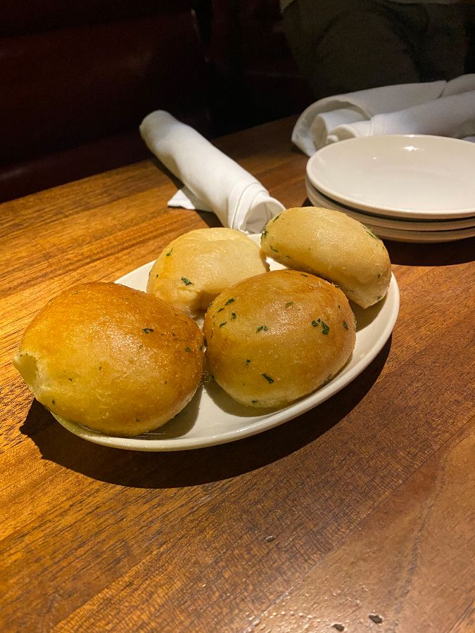 메인 요리를 기다리는 동안, 참을 수 없는 허기를 달래줄 애피타이저로 갈릭 롤과 버팔로 콜리플라워를 주문했습니다. 먼저 따뜻하게 데워져 나온 갈릭 롤은 그야말로 감동이었습니다. 갓 구운 빵의 고소한 향과 은은한 마늘 향이 어우러져, 겉은 살짝 바삭하고 속은 솜털처럼 폭신폭신한 식감을 자랑했습니다. 한 입 베어 물자마자 입안 가득 퍼지는 버터와 마늘의 풍미는 마치 미식의 서막을 알리는 팡파르 같았습니다. 이어서 등장한 버팔로 콜리플라워는 시각적으로도, 미각적으로도 강렬한 인상을 남겼습니다. 바삭하게 튀겨진 콜리플라워 조각들은 매콤달콤한 버팔로 소스를 머금고 있었고, 그 위에 뿌려진 짭짤한 치즈 조각들이 완벽한 조화를 이뤘습니다. 매콤하면서도 은은하게 감도는 감칠맛은 멈출 수 없는 유혹이었고, 한 조각, 두 조각 연달아 먹게 만드는 중독성이 있었습니다. 이는 단순히 채소를 튀긴 것을 넘어, 완벽한 스타터로서의 존재감을 뽐냈습니다.
