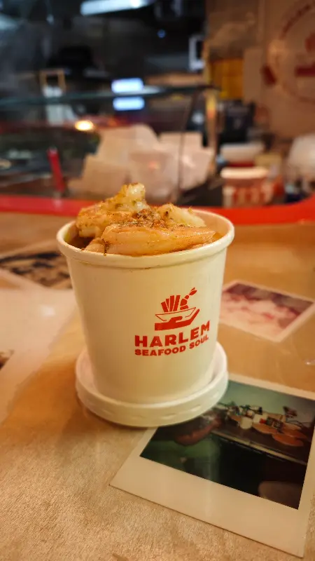 디칼브 마켓의 활기 넘치는 분위기 속에서, 넷플릭스에서 보았던 ‘할렘 시푸드 소울’을 우연히 발견했을 때의 설렘은 이루 말할 수 없었습니다. 단순한 음식을 넘어, 뉴욕의 소울푸드를 맛볼 수 있다는 기대감에 발걸음은 이미 가게 안으로 향하고 있었죠. 가게 안은 활기가 넘쳤습니다. 푸드 스테이션에서는 연신 맛있는 냄새가 코를 자극하고, 직원들은 친절하게 손님을 맞이하고 있었습니다.