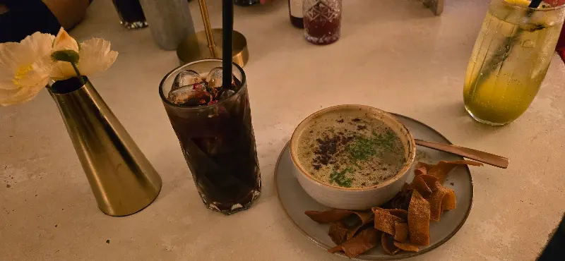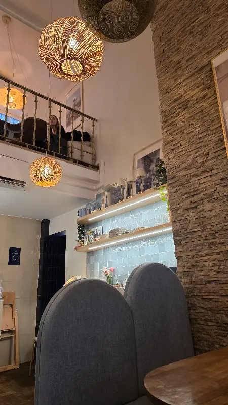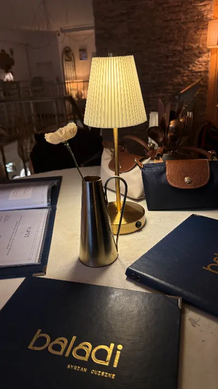 발라디는 맛뿐만 아니라 분위기 또한 훌륭했습니다. 도심 한가운데 위치해 있지만, 내부는 작고 아늑한 2층 구조로 이루어져 있습니다. 따뜻한 색감의 조명과 아기자기한 소품들이 편안한 분위기를 자아냈습니다. 특히 2층에서 내려다보는 풍경은 식사를 더욱 즐겁게 만들어 주었습니다. 은은하게 빛나는 조명 아래, 시리아의 전통적인 분위기를 느낄 수 있는 장식들이 눈길을 사로잡았습니다.