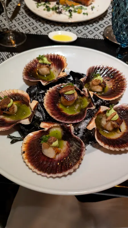 이미지 속 먹물 리조또는 검은색 쌀알 위에 하얀 소스와 초록색 채소가 흩뿌려져 있어 시각적인 대비를 이루며, 식욕을 자극합니다. 무료로 제공되는 전채 요리 또한 훌륭하며, 2021년에 미슐랭 스타를 비롯한 여러 상을 받은 이력은 이 곳의 명성을 더욱 공고히 합니다. 전통적인 스페인 요리를 넘어선 놀라운 미식 경험을 선사하는 곳이라는 평가는 결코 과장이 아닙니다.