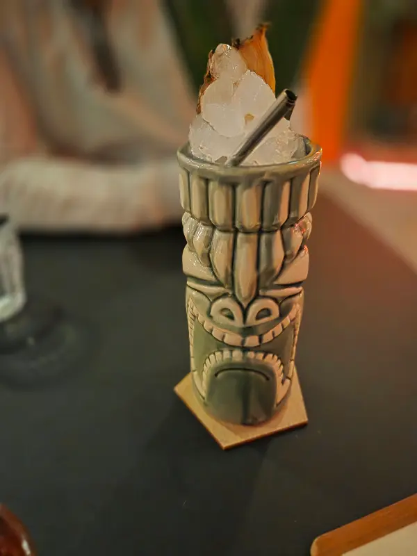 ‘핫 캔디’는 달콤하면서도 짜릿한 맛이 매력적인 칵테일이었다. 마치 어린 시절 즐겨 먹던 불량식품을 고급스럽게 재해석한 듯한 느낌이랄까. 입안에 넣는 순간, 달콤한 설탕의 풍미가 느껴지다가 이내 알싸한 향신료의 향이 코끝을 간지럽혔다. 칵테일 위에 올려진 작은 사탕 조각은 보는 즐거움까지 더해주었다.