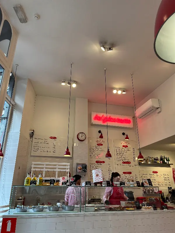 문을 열고 들어선 피스톨레는 아늑하고 편안한 분위기로 가득했습니다. 하얀 벽돌과 빨간색 포인트 컬러가 조화롭게 어우러진 인테리어는 벨기에 전통의 멋스러움과 현대적인 감각이 공존하는 듯했어요. 천장에서 은은하게 드리워진 조명 아래, 갓 구워져 나온 빵 냄새가 코를 간지럽혔습니다. 활기찬 미소로 손님을 맞이하는 직원들의 모습에서 따뜻함이 느껴졌어요. 관광객보다는 현지인들이 더 많아 더욱 기대감이 커졌습니다.
