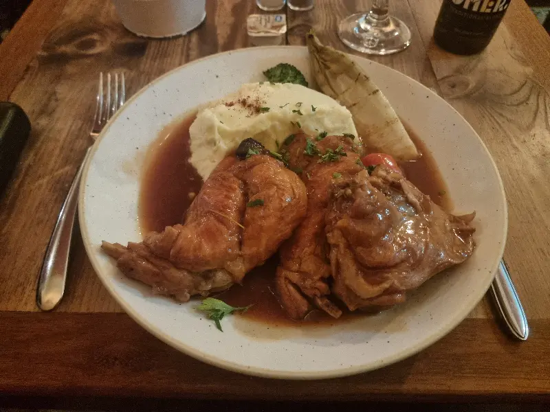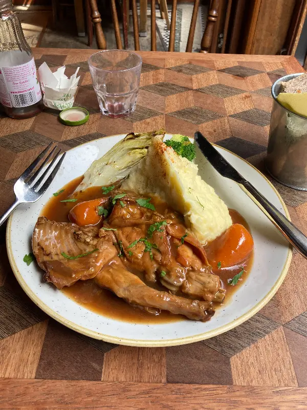 토끼 고기는 전혀 퍽퍽하지 않고, 마치 장조림처럼 부드러웠습니다. 간도 짜지 않아 좋았고, 함께 나온 매쉬드 포테이토와 곁들여 먹으니 환상적인 조화를 이루었습니다. 스튜 소스는 감자탕 국물과 비슷한 느낌도 들었는데, 한국인의 입맛에도 잘 맞을 것 같았습니다.