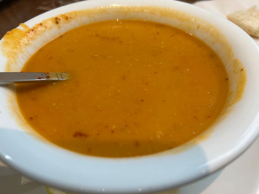 고민 끝에, 직원분의 추천을 받아 밤야 수프와 카르니 야륵을 주문했습니다. 잠시 후, 테이블 위로 따뜻한 김이 모락모락 피어오르는 밤야 수프가 놓였습니다.