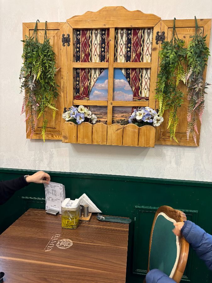 레스토랑 내부는 아담하지만, 테이블 간 간격이 넓어 편안하게 식사를 즐길 수 있었습니다. 은은한 조명 아래, 나무 테이블과 의자는 따뜻하고 아늑한 분위기를 자아냈습니다. 벽에는 터키 전통 문양이 새겨진 장식품들이 걸려 있어 이국적인 정취를 더했습니다.