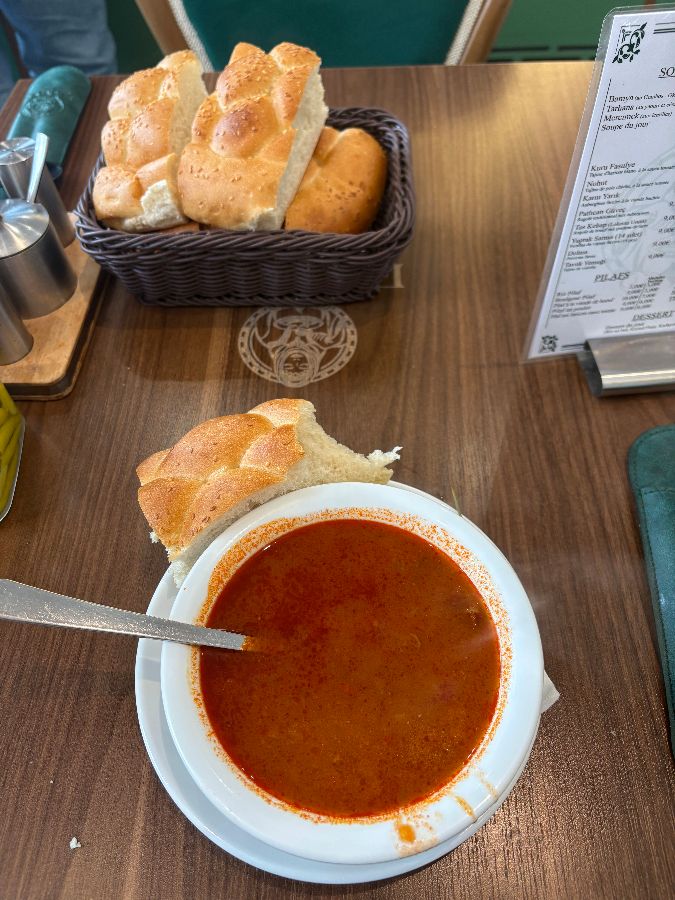 수프의 첫 맛은 깊고 진했습니다. 토마토를 베이스로 한 국물은 부드럽고 따뜻했으며, 양고기와 채소의 풍미가 입안 가득 퍼져나갔습니다. 마치 터키 할머니가 정성껏 끓여준 듯한 따뜻한 맛이었습니다. 수프를 한 입 맛보는 순간, 긴 여행의 피로가 눈 녹듯이 사라지는 듯했습니다. 한 고객은 “음식은 정말 전설적이었어요. 어머니 음식이 아니라 할머니 음식이었죠. 노련한 셰프의 솜씨가 그대로 느껴졌어요.”라고 극찬했습니다.