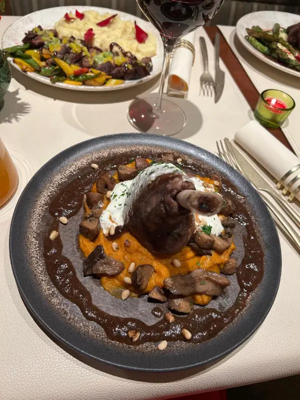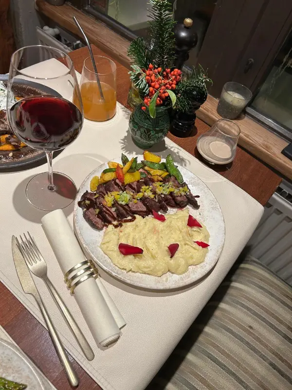 레스토랑 내부는 아늑하면서도 고급스러운 분위기를 자아냈다. 테이블마다 놓인 촛불과 은은한 조명이 따뜻함을 더했고, 직원들의 친절한 미소와 세심한 배려가 인상적이었다. 자리에 앉자마자 메뉴판과 함께 식전 빵이 제공되었다. 빵은 겉은 바삭하고 속은 촉촉했으며, 함께 나온 버터는 부드럽고 풍미가 깊었다. 웨이터는 메뉴에 대한 자세한 설명을 곁들이며, 우리의 취향에 맞는 음식을 추천해 주었다. 그의 친절함 덕분에 더욱 편안하게 식사를 즐길 수 있었다.