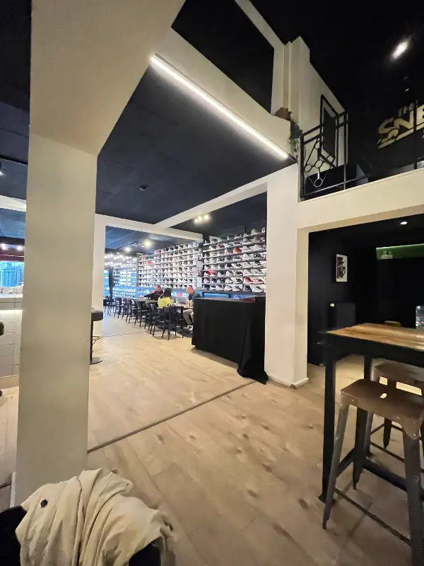 스니커즈 카페는 단순한 바(Bar)를 넘어, 문화와 예술이 공존하는 특별한 공간이었다. 벽면을 가득 채운 스니커즈 컬렉션은 그 자체로 하나의 예술 작품이었다. 알렉시스의 뛰어난 시각 커뮤니케이션 감각은 공간 곳곳에 녹아있었다. 둥근 수영장 모양의 타일로 장식된 바는 독특하고 인상적이었다.