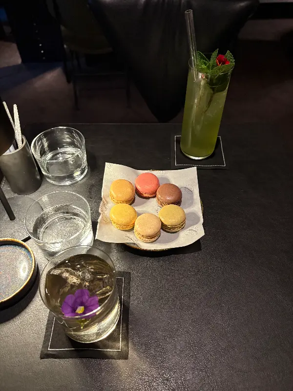 컨페션스에서는 칵테일 외에도 다양한 디저트를 즐길 수 있습니다. 특히 마카롱은 칵테일과 환상적인 궁합을 자랑합니다. 달콤하고 부드러운 마카롱은, 칵테일의 풍미를 더욱 깊게 만들어줍니다. 칵테일 한 잔과 마카롱 한 입, 이보다 더 완벽한 조합이 있을까요?