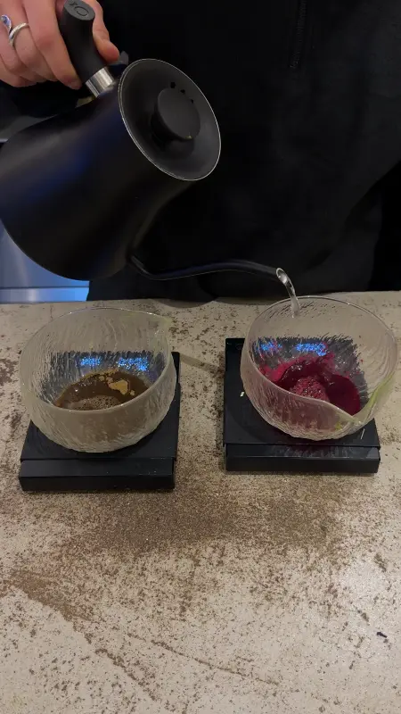 바리스타의 정성이 담긴 스페셜티 커피 제조 과정. 섬세한 손길에서 커피에 대한 열정이 느껴진다.