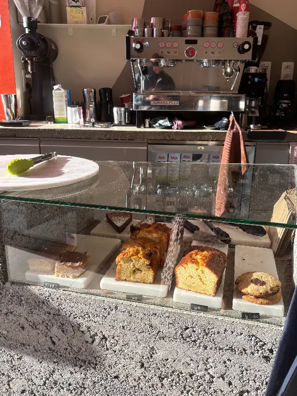 커피와 함께 곁들일 디저트도 빼놓을 수 없습니다. 쇼케이스 안에는 다양한 종류의 페이스트리와 케이크가 진열되어 있었는데, 하나하나 정성스럽게 만들어진 모습이었습니다. 레몬 케이크는 상큼한 레몬 향과 촉촉한 식감이 일품이었습니다.