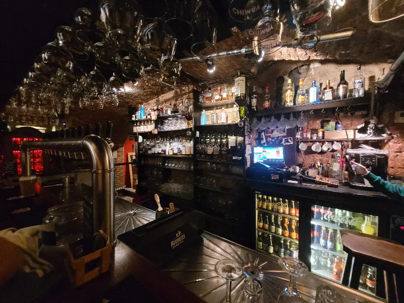 좁고 가파른 계단을 따라 내려가는 발걸음. 삐걱거리는 나무 계단의 울림은 마치 시간 여행을 떠나는 듯한 설렘을 안겨주었다. 드디어 모습을 드러낸 La Porte Noire는 기대 이상이었다. 붉은 벽돌 아치형 천장과 은은한 조명, 앤티크 가구들이 조화롭게 어우러져 독특하고 매혹적인 분위기를 자아냈다.