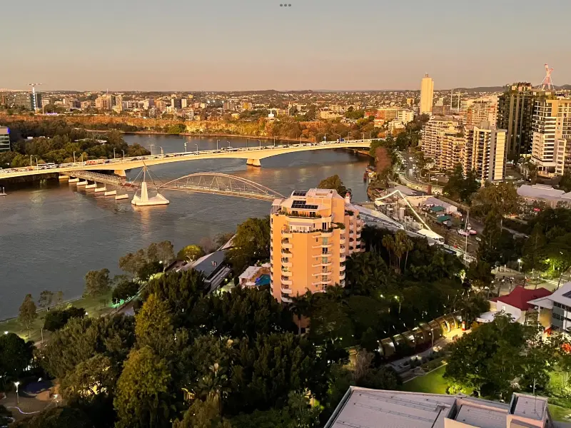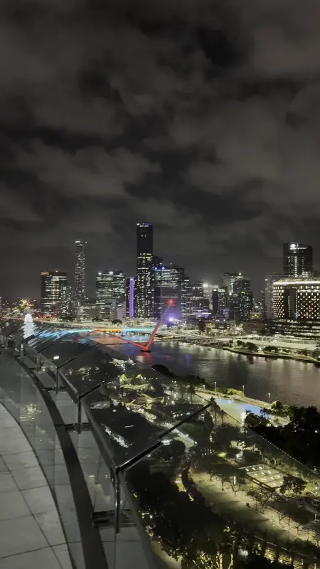 문을 열고 들어서는 순간, 탄성이 절로 나왔습니다. 드넓게 펼쳐진 브리즈번 시티의 야경은 그야말로 장관이었죠. 도시의 불빛들이 강물에 비쳐 반짝이는 모습은 마치 은하수를 옮겨 놓은 듯했습니다. 루프탑 바의 개방적인 분위기는 도시의 활기를 더욱 생생하게 느끼게 해주었고, 모던한 인테리어는 세련된 감각을 더했습니다. 아름다운 야외 루프탑에서 도시, 석호, 강, 다리, 캥거루 포인트 절벽, 그리고 반짝이는 야경까지 한눈에 담을 수 있는 환상적인 파노라마 뷰를 감상할 수 있습니다. 특히 밤에는 더욱 마법 같은 분위기를 자아냅니다.