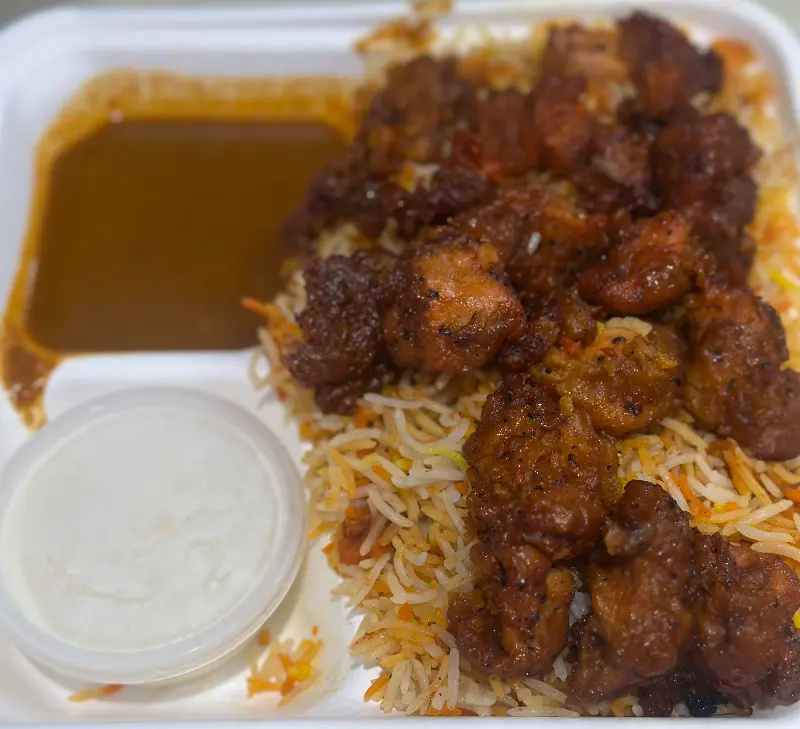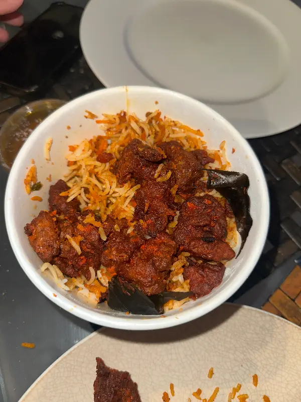 특히 함께 제공된 소스는 비리야니의 풍미를 한층 더 끌어올렸다. 부드러운 질감과 독특한 풍미는, 비리야니의 매콤함을 중화시켜주면서도 깊은 맛을 더했다. 밥알 하나하나에 소스가 스며들어, 입 안에서 더욱 풍성한 맛을 느낄 수 있었다.