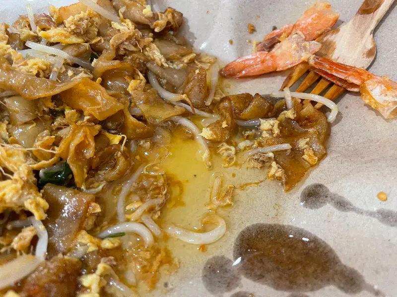 하지만 모든 메뉴가 만족스러웠던 것은 아닙니다. 남편이 주문한 볶음면(차퀘이테오)은 기름에 푹 절여져 있었고, 웍에서 볶을 때 나는 특유의 불맛(wok hei)도 느껴지지 않아 실망스러웠다는 후기가 있었습니다. 아들이 주문한 미고렝 역시 아쉬운 맛이었다고 하니, 볶음면 종류는 다소 개선이 필요해 보입니다. 사진으로 보이는 볶음면은 기름기가 많아 보이고, 면이 다소 뭉쳐있는 듯한 느낌을 줍니다.