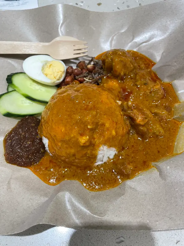 아침 일찍 방문하여 커리 치킨 나시 레막을 주문했습니다. 코코넛 밀크로 지은 밥의 은은한 향이 코를 간지럽히고, 보기 좋게 담겨 나온 음식은 군침을 삼키게 했습니다. 첫인상은 합격점이었죠.