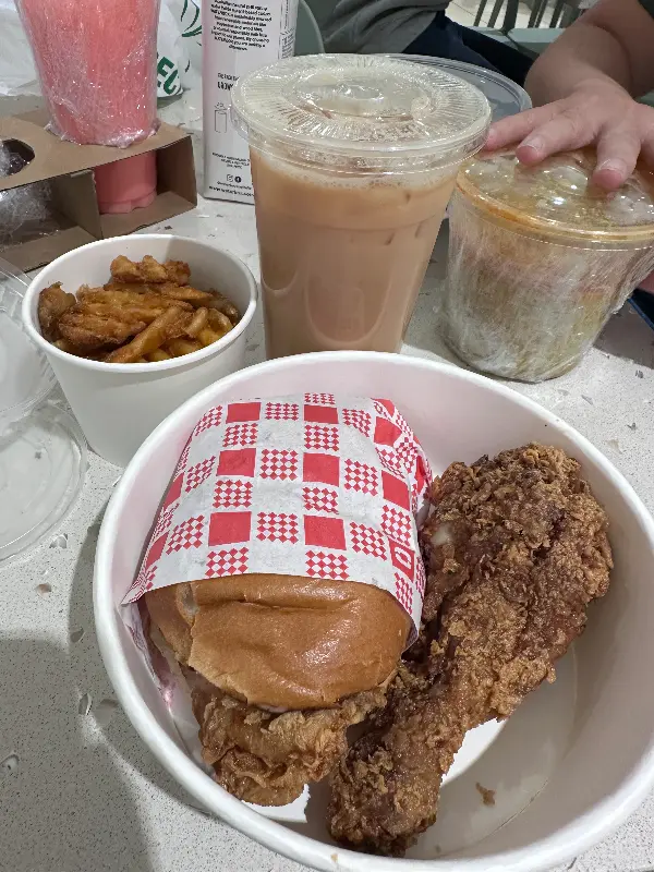 레막의 프라이드 치킨은 겉은 바삭하고 속은 촉촉하여 많은 사랑을 받고 있다.