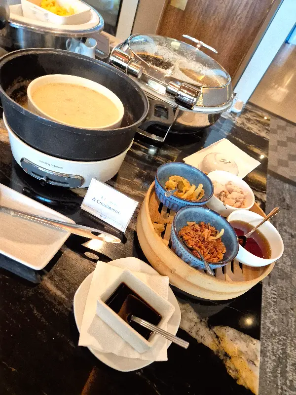 라운지 공간이 좁다는 점은 아쉬웠다. 특히, 붐비는 시간에는 자리를 찾기 어려울 정도였다. 뷔페 공간 역시 협소하여 음식을 가져오는 데 불편함이 있었다. 커피 머신과 셀프 서비스 음료 역시 부족하게 느껴졌다.